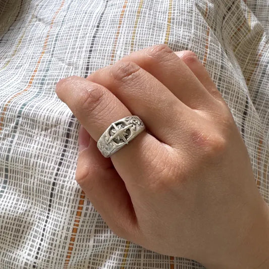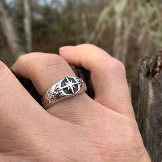 This is an amazing piece of artwork. I asked for a lighter blackening around the compass and the ring itself throughout, seller had excellent customer services made my ring exactly the way I wanted. Also it is very comfortable to wear, it’s thick but it fits smoothly, not scratchy or feel like bumps. It’s very nice. I love it.