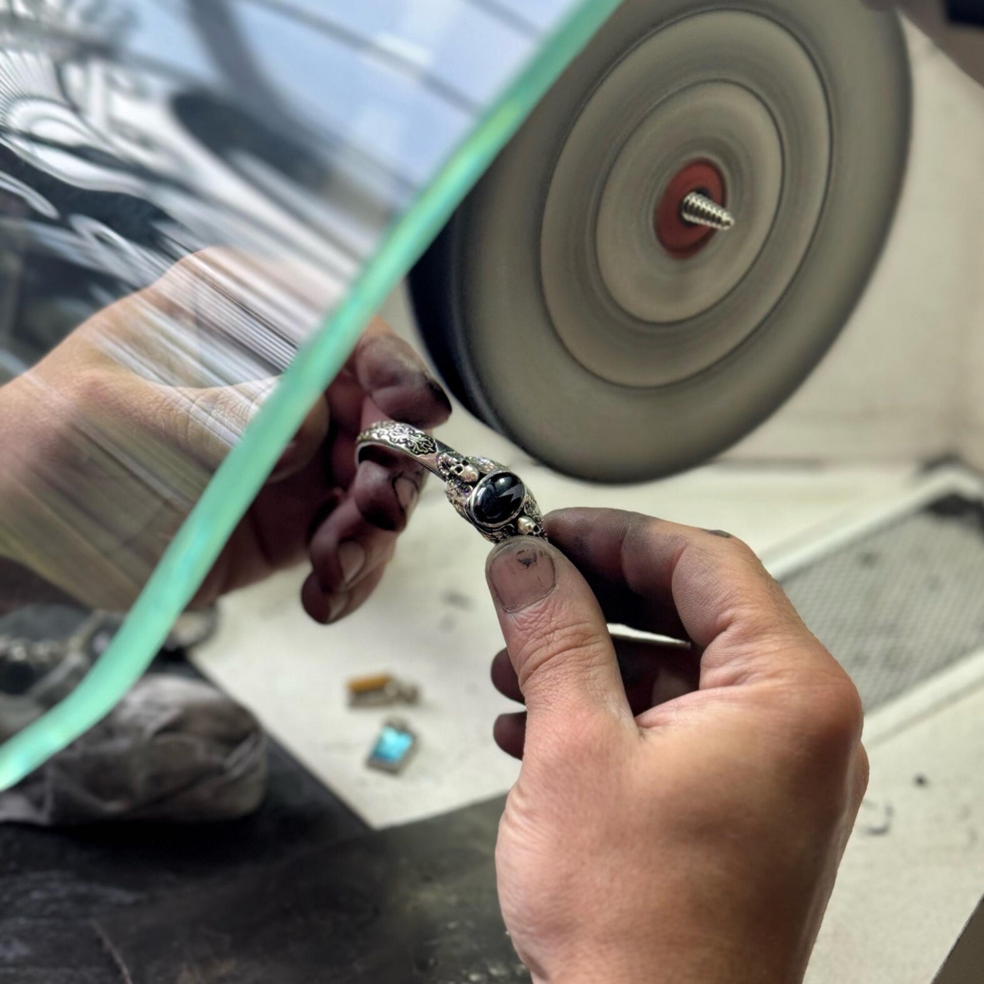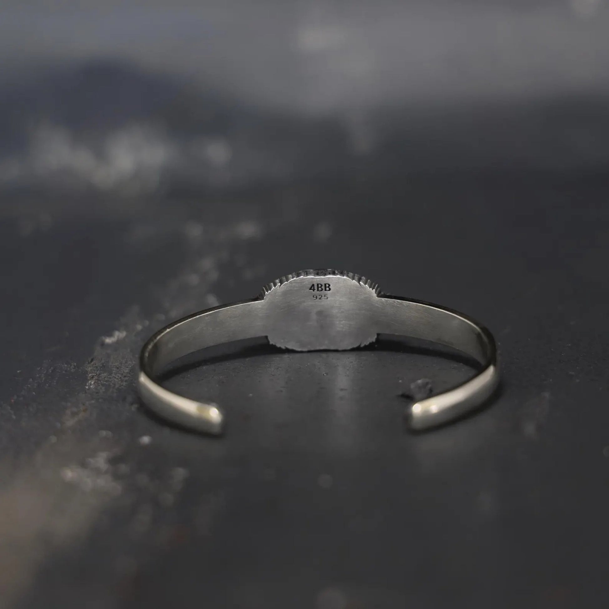Mens Turquoise Stone Silver Bracelet with Gothic Skull Charm