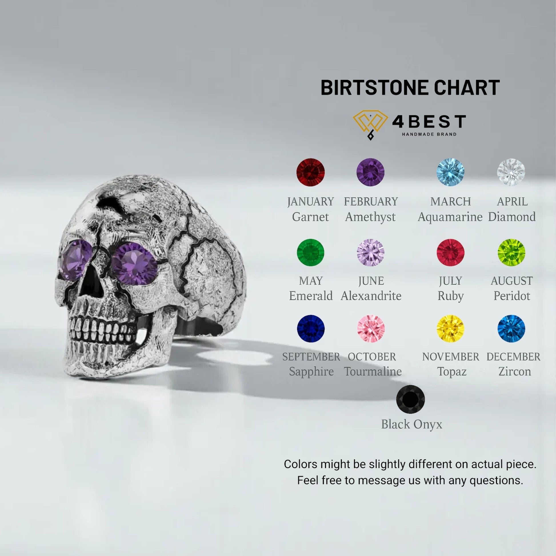 Personalized Biker Skull Ring for Men - 925 Sterling Silver Gothic Jewelry