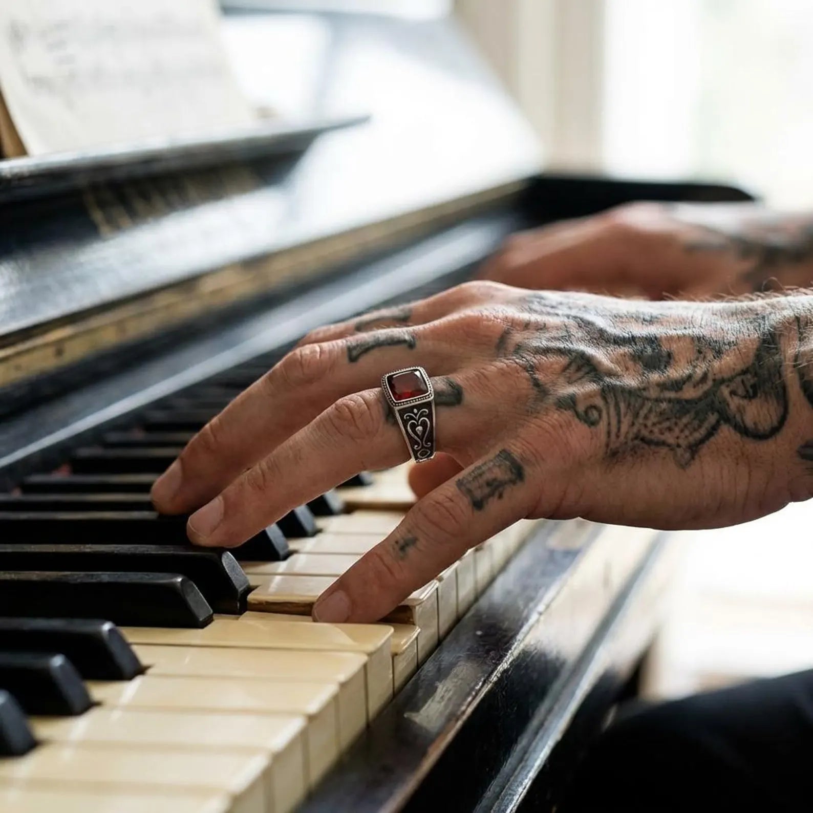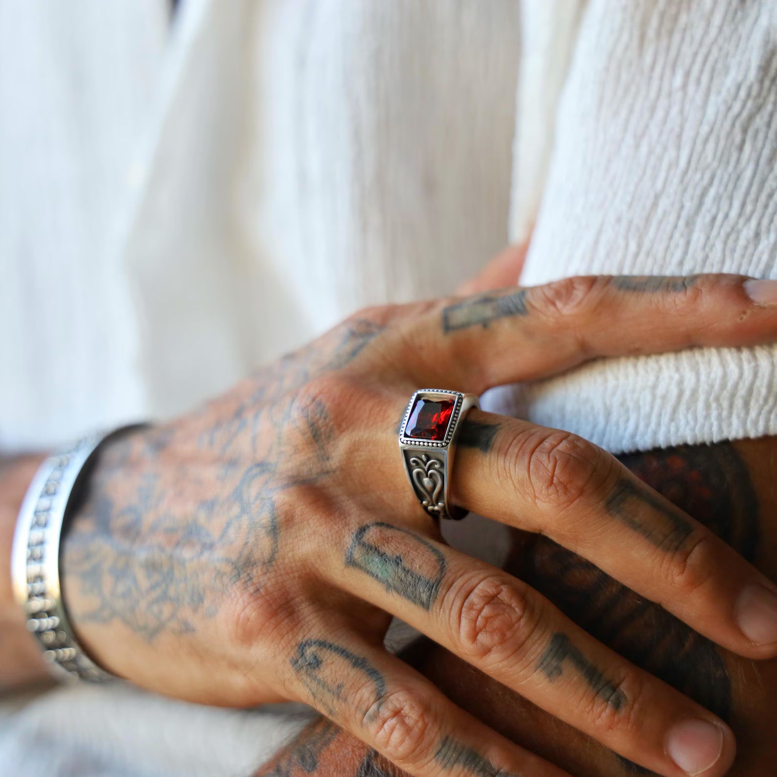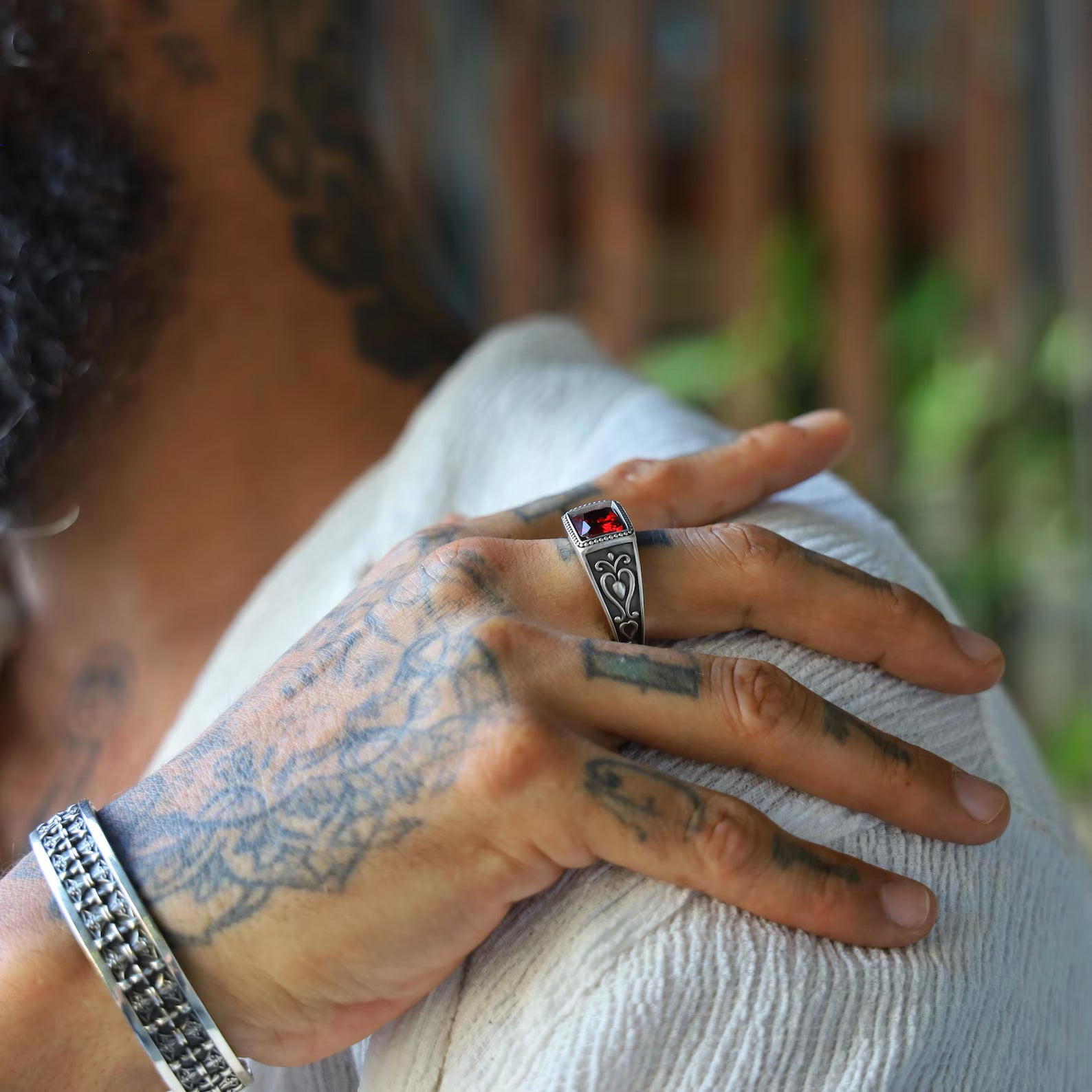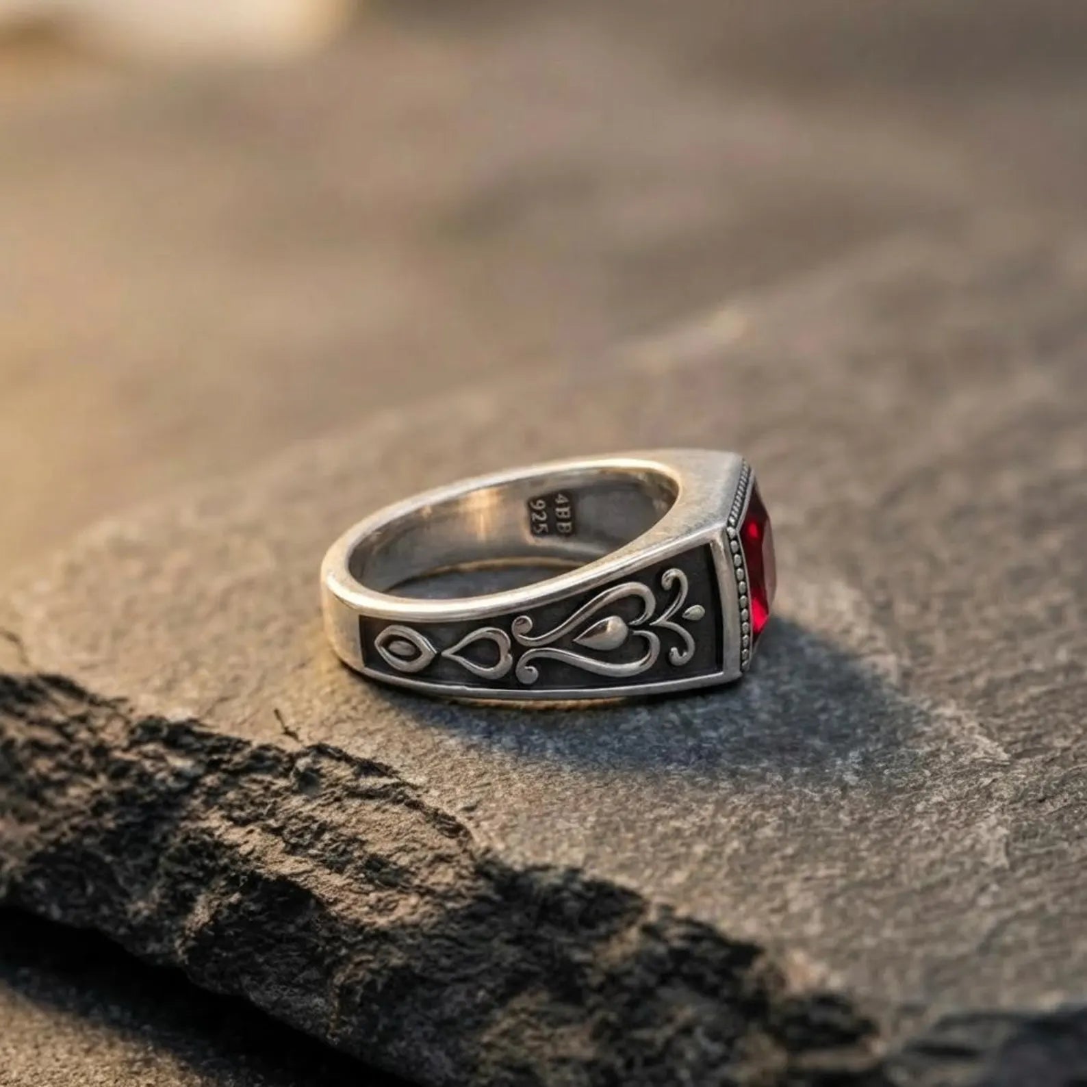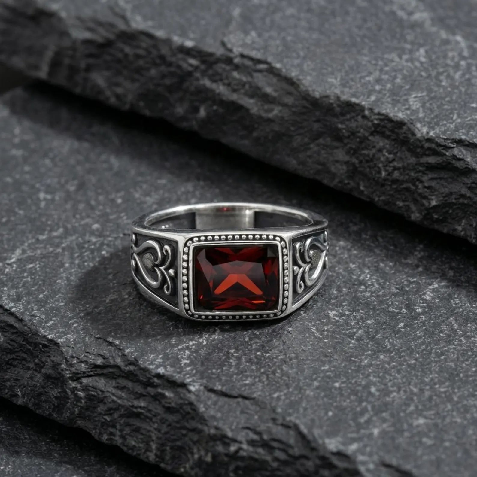 Gothic Garnet Ring for Men